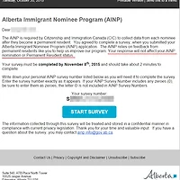 | Alberta Immigrant Nominee Program (AINP) - 3 Month Survey (0) | 2015.10.22 |